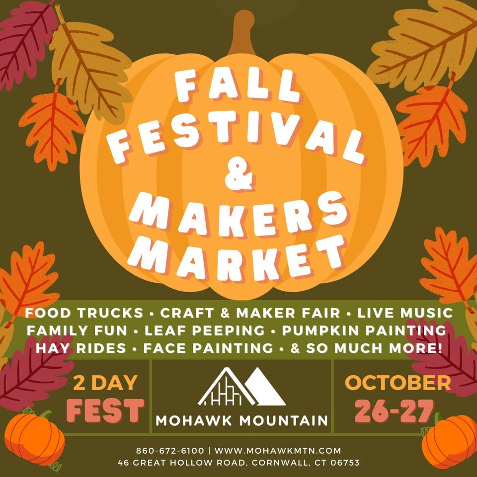 FeaturedMohawk Mountain Ski Area 46 GREAT HOLLOW RD., Cornwall, CTMohawk Mountain’s Annual Fall Festival & Makers Market/Craft Fair is back this year from 10AM -4 PM Saturday & Sunday, October 26st & 27th! We are celebrating ALL THINGS FALL and we couldn’t be more excited to share this big news with you! It’s going to be a family fun weekend for all! Outside, the...