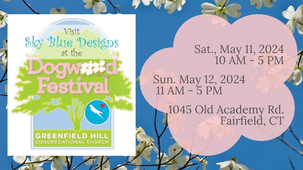 FeaturedGreenfield Hill Congregational Church 1045 Old Academy Rd., Fairfield, CT, United StatesSky Blue Designs will celebrate the Greenfield Hill Dogwood Festival May 11-12, 2024. We will join Over 50 New England vendors offering our beautiful and fun handmade beaded jewelry along with accessories, hand crafted furniture, photography, garden items, artisan foods, and so much more! Other featured events include children's crafts and games, live music, Dogwood...