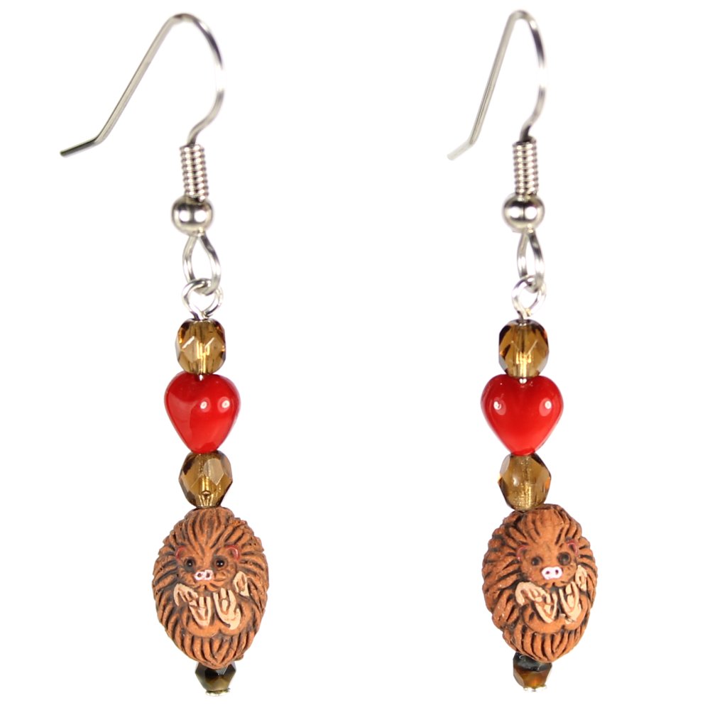 Teeny tiny Peruvian ceramic hedgehog beads dangle beneath coordinating Czech glass beads. Fans of these cute woodland creatures will love these earrings, which measure approximately 2″ long, including stainless steel ear wires.